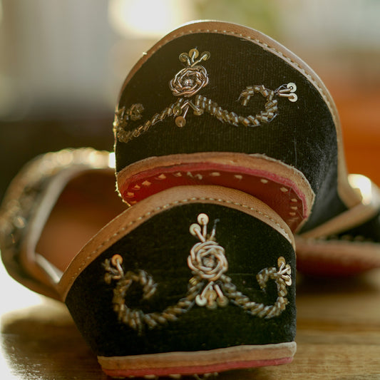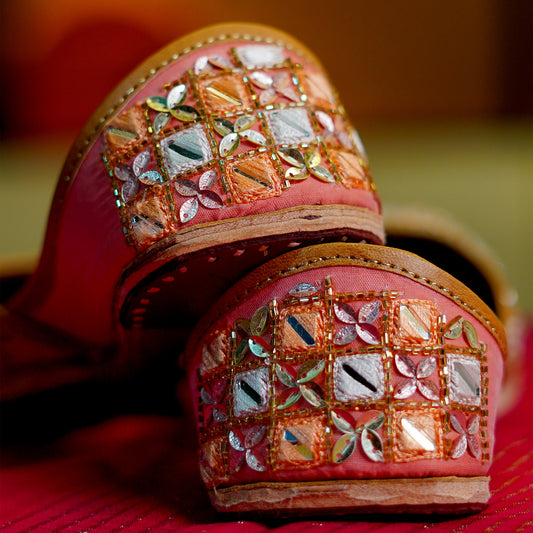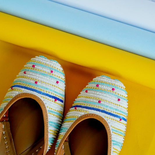 Juttis are a great example of handcrafted art, often made using traditional techniques. The process involves cutting the material, stitching, and adding decorative elements, which can include beads, sequins, and mirror work.