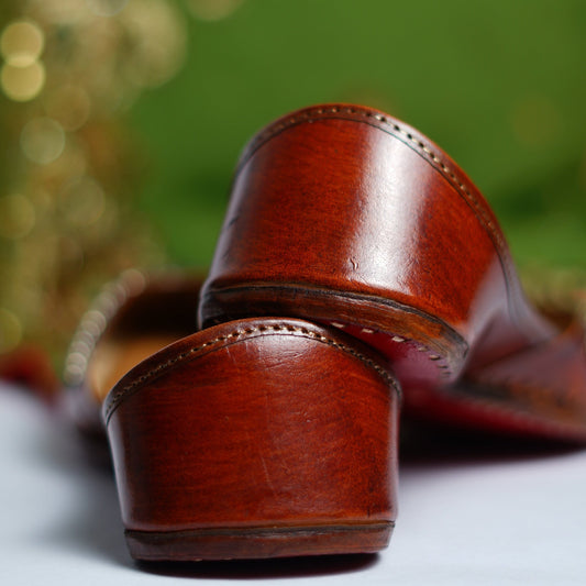 To care for your jutti, clean it regularly with a soft cloth, avoid water, store it in a cool, dry place, and If your jutti has a stubborn stain, just use a wet cloth with some soap to clean it, then use a dry cloth to wipe it off.